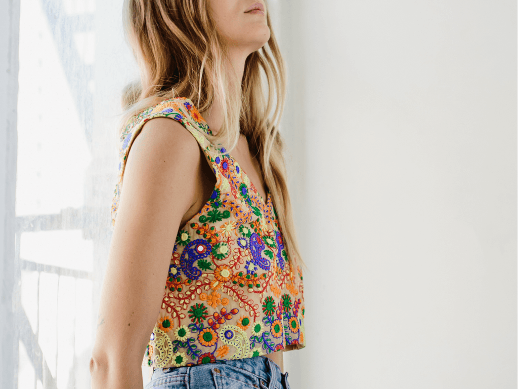 Luxurious Indian textiles in minimalist relaxed silhouettes.